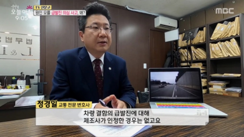 2020년 06월 26일 MBC 생방송 오늘아침 급발진 사고 교통사고 피해자 전문 정경일 변호사 인터뷰 내용입니다.
