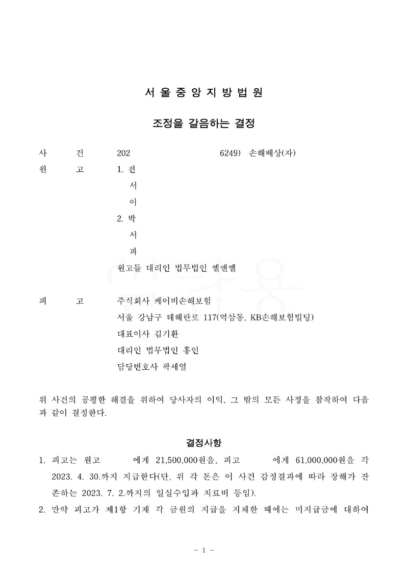 결정문 2023년 03월 30일 [서울중앙지방법원 1심 조정을갈음하는결정문]