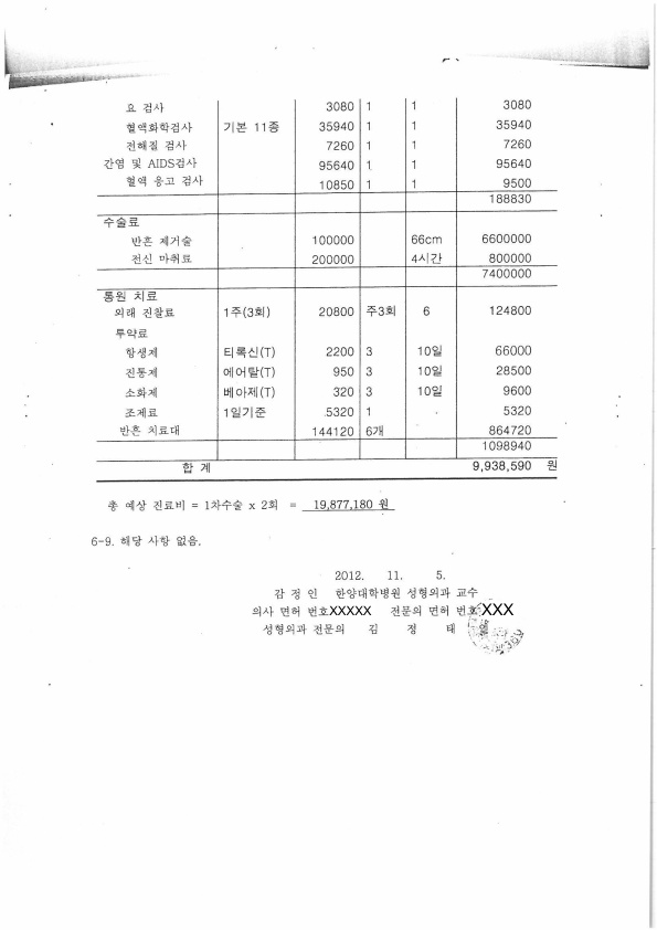 | 한양대학병원 [추형반흔] 법원신체감정서 | 2012.12.18 |