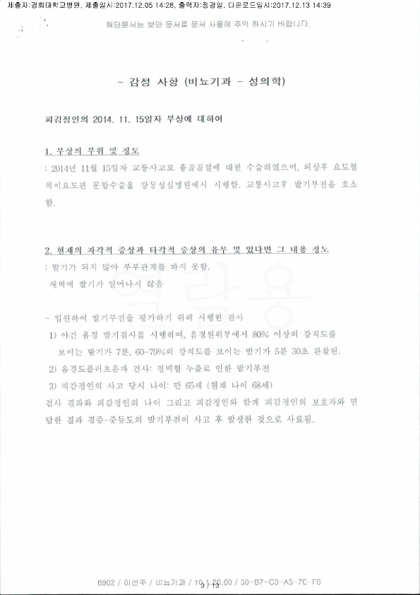 비뇨기과 경희대학교병원 페이지 정보 작성자 교통사고 로펌 댓글 0건 작성일 2017-12-13 17:31:17 본문 정경일 변호사의 교통사고 로펌 경희대학교병원 법원신체감정서 2017.12.13 http://www.tadlf.com/bbs/board.php?bo_table=page1_6&wr_id=312 출력 검색 목록 이전글중앙대학교병원[요류 약화, 요주저 및 배뇨 곤란] 20.10.27 다음글고려대학교안산병원 18.10.02